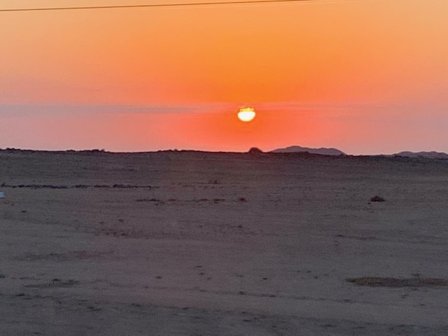 Nach 30 Stunden haben wir endlich Swarkopmund erreicht. Die Fahrt von Windhuk nach Swarkopmund war ziemlich anstrengend und hatte mit Gewitter, Hitze und einem traumhaften Sonnenuntergang schon viel Afrika !