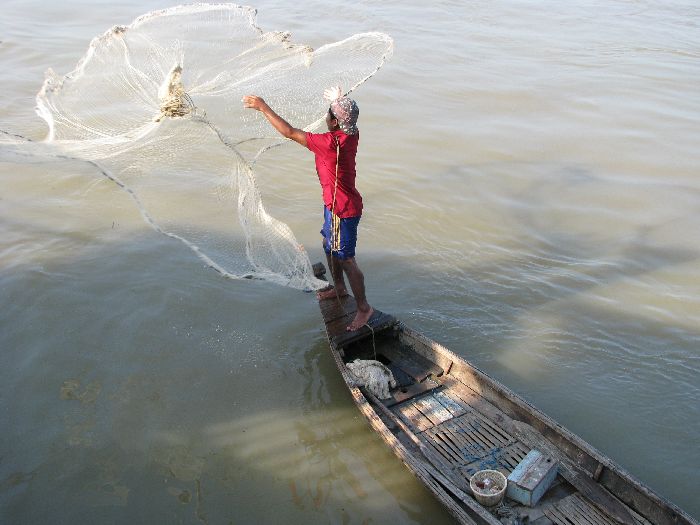 Anschliessend ging’s weiter in die Handwerker-Viertel im Sueden der Stadt. Unter einfachsten Bedingungen arbeiten hier Holzschnitzer, Stickerinnen, Bronzegiesser, Steinmetze, Gold- und Bambuspapierschlaeger. Das Blattgold wird und wurde dem Buddha in der Mahamuni-Pagode tonnenweise aufgelegt, so dass er seine urspruengliche Form schon voellig verloren hat. Animiert von so viel Gold gingen wir ins „Golden Duck“ zum Mittagessen