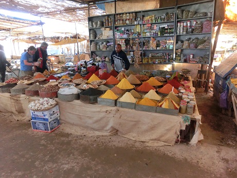 In der Textilabteilung erwarb Sanne Ihr erstes Berbergewand. Im Zentrum des Marktes wurden die Schätze der Wüste – Datteln und Salz – gehandelt.