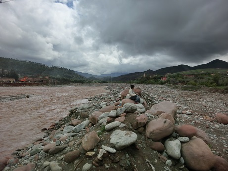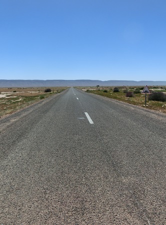 Nach einem wunderbaren Frühstück auf der sonnigen Terrasse mit Blick über die Oase, machten wir uns auf den Weg durch die Ebene zwischen Antiatlas und Jebel Bani zu fahren. Da diese Gegend sehr dünn besiedelt ist, wollten wir sicherheitshalber trotz mehr als halbvollen Tanks noch etwas Sprit nachlegen. Doch kaum waren 0,88 Liter im Tank, streikten die Zapfsäulen wegen eines Stromausfalls in der ganzen Stadt. Nach einer viertelstündigen Wartezeit entschieden wir uns dafür, auf die nächste kleine Stadt Foum Zguid zu vertrauen.