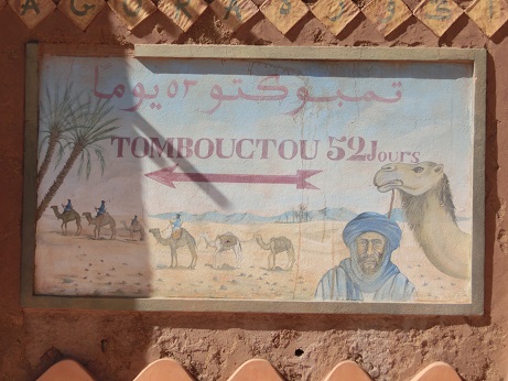 Am späten Mittag erreichten wir Zagora und wie es sich für einen Freitag in Marokko gehört, speisten wir Couscous. Dann machten wir uns auf die Suche nach dem berühmten Schild für Transsahara-Karawanen, dass von Zagora bis Timbuktu noch 52 Tage vor ihnen lagen. Da keine von uns so viel Urlaub hat, verzichteten wir auf diesen kleinen Abstecher.