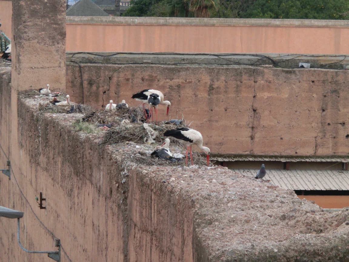 Auf dem Weg zu den Souks erwischten wir den rasantesten Taxifahrer der Stadt. Endlich am Dar el Bachca (ehemalige Residenz des Paschas von Marrakesch, heute Gouverneurspalast) angekommen, verließen wir fluchtartig das Taxi . Kaum lies der Würgereiz nach,stellte Heike fest, dass die Kamera noch immer im Taxi ist . Die Sicherheitsbeamten vor dem Palast erwiesen sich als ausgesprochen freundlich und hilfsbereit und um es kurz zu machen : in bester Miss Marpel-Manier konnten wir den Taxifahrer anhand seines kleinkarierten Jackets ausfindig machen. Die Kamera schlummerte unberührt auf der Rückbank!